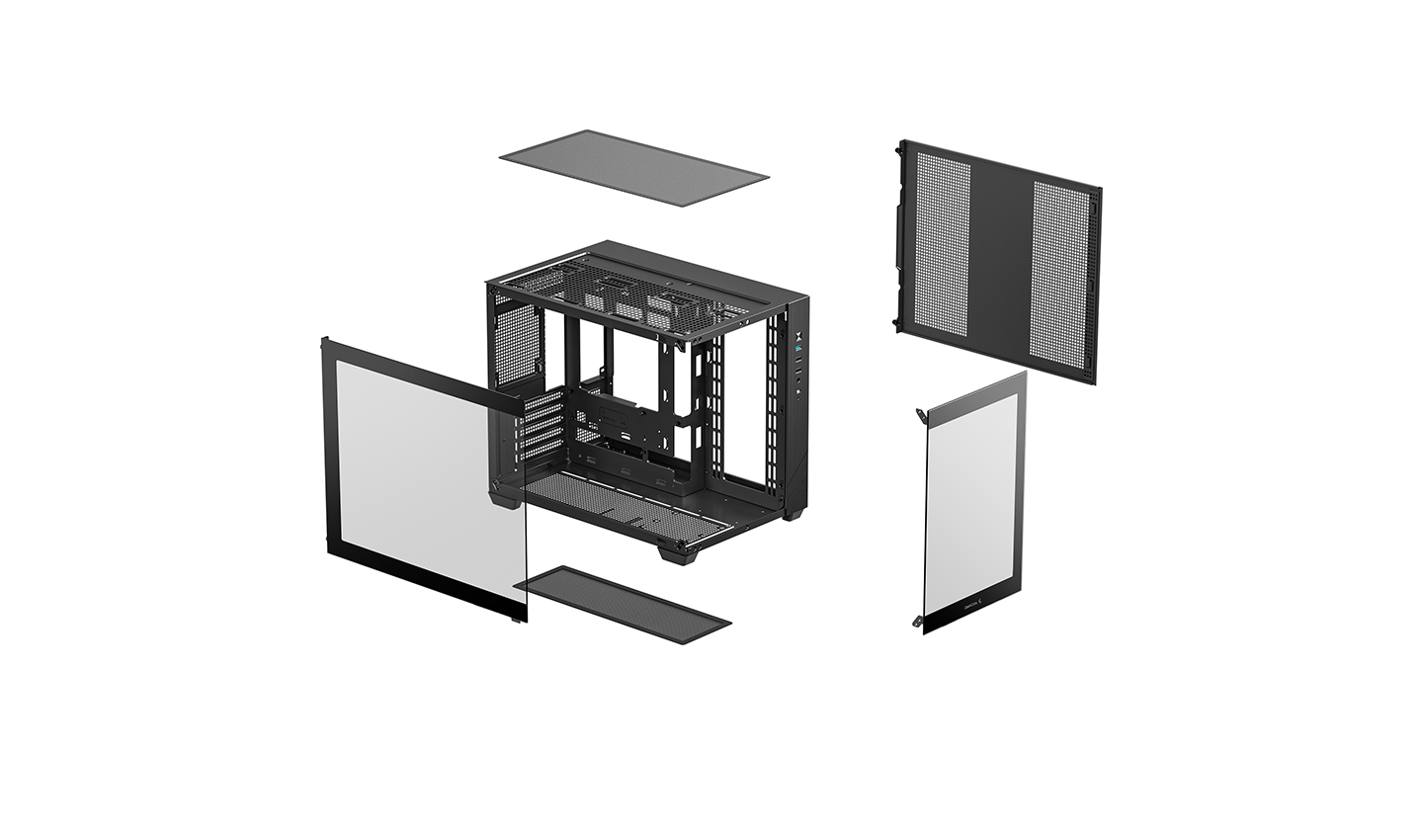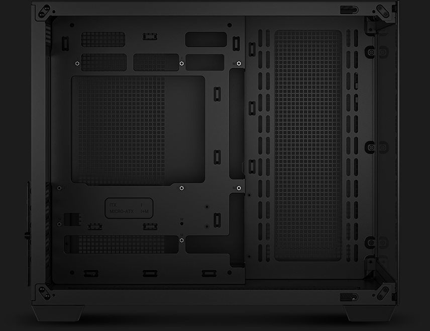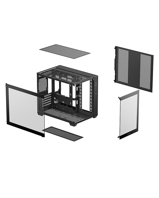 双舱式布局设计,将电源和存储部件与主风道隔离。这不仅提升了散热效率,更能有效利用内部空间,助您轻松打造清爽整机方案。