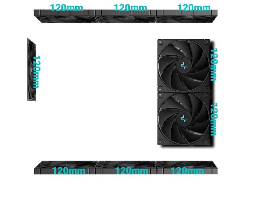 CG330拥有出色的散热扩展性,无惧热量挑战。机箱内最多可安装 9 把 120mm 风扇,最大限度增强气流。顶部或底部支持最大 360mm 规格,侧面支持最大 280mm 规格。