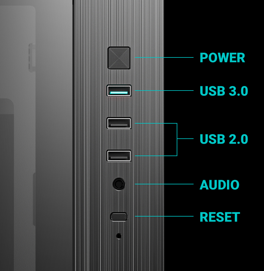 侧面 I/O 面板提供 USB 3.0、双 USB 2.0 及音频接口,轻松连接设备。