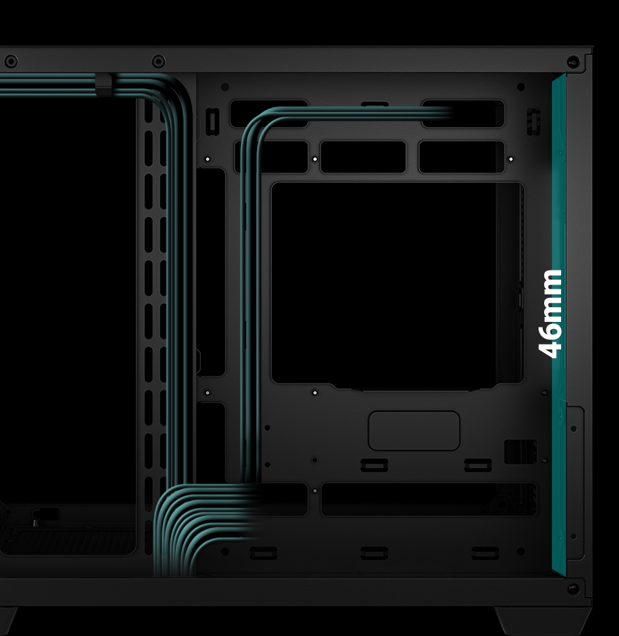 充裕的 46mm 背线空间,让您的线材轻松走线,整齐有序。