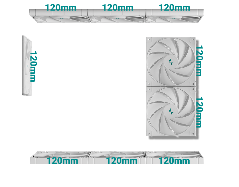 CG330 WH拥有出色的散热扩展性,无惧热量挑战。机箱内最多可安装 9 把 120mm 风扇,最大限度增强气流。顶部或底部支持最大 360mm 规格,侧面支持最大 280mm 规格。
