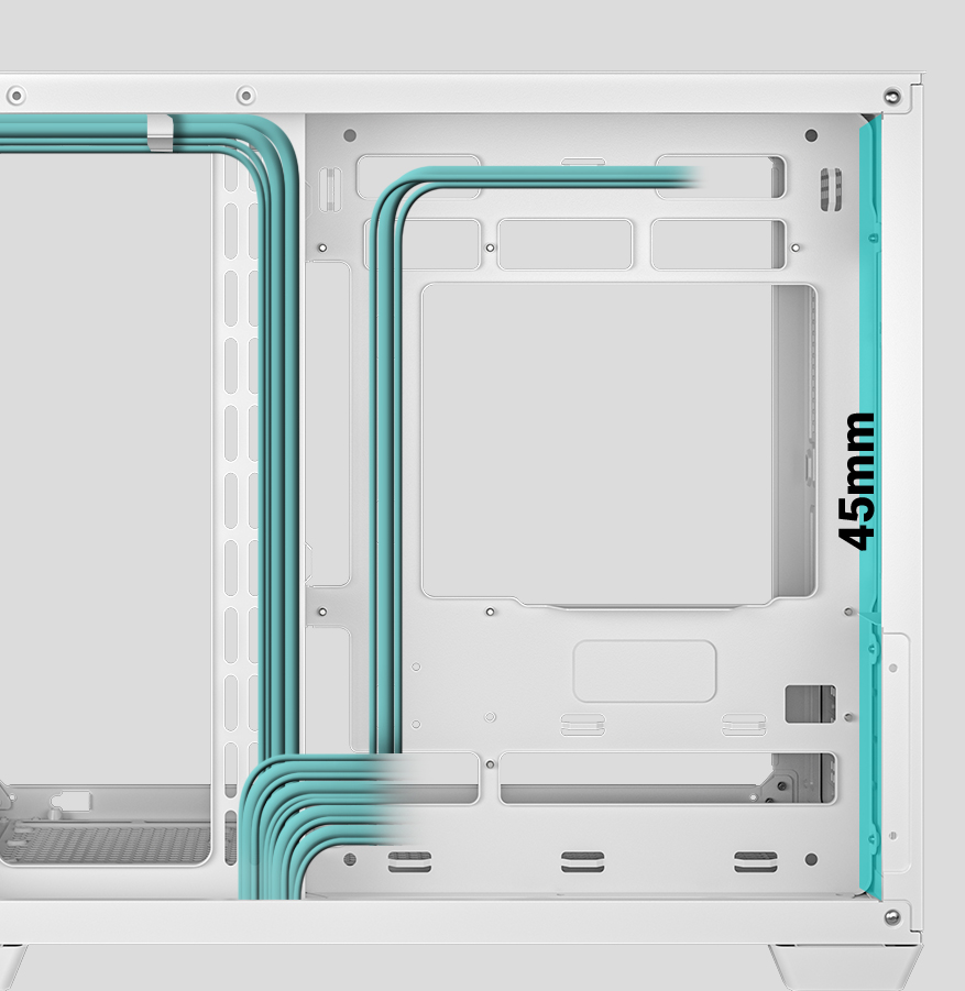 充裕的 46mm 背线空间,让您的线材轻松走线,整齐有序。