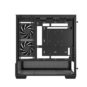 CG380 3F 采用无立柱全景侧透面板,在紧凑的尺寸内提供开阔视野。独特网面下置电源舱可为显卡和电源提供更好的散热。它还支持背插主板,巧妙隐藏线材,呈现整洁利落的外观。