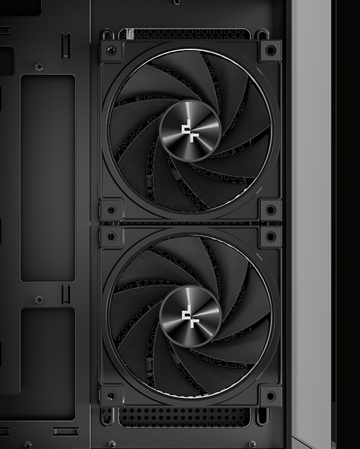 精心布局的散热通道有效抑制热量积聚,即使是全景式构建也不例外。CG380 3F 最多支持 9 个 120mm 风扇,顶部可支持 360mm 冷排,为您提供兼顾性能和风格的灵活构建方案。