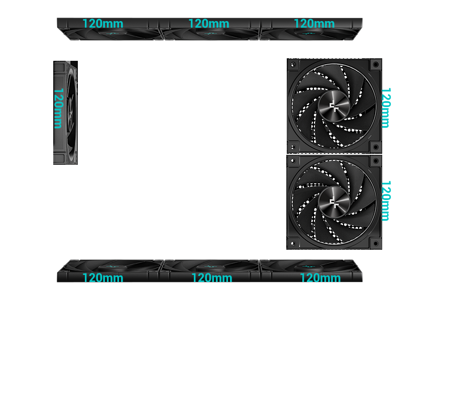 Top: 3×120mm/2x140mm