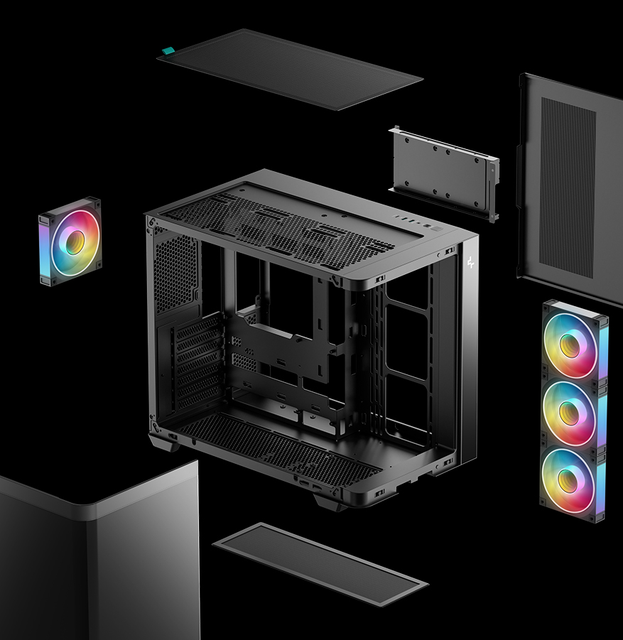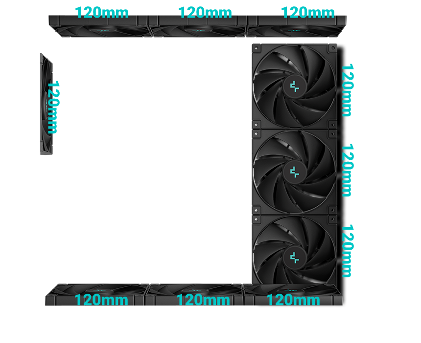 | 风扇支持 | Front: NA Top: 3×120mm/2x140mm Side: 3×120mm/2x140mm Rear: 1×120mm Bottom: 3×120mm/3.5 HDD+2x120mm/2.5 SSD+2x120mm |