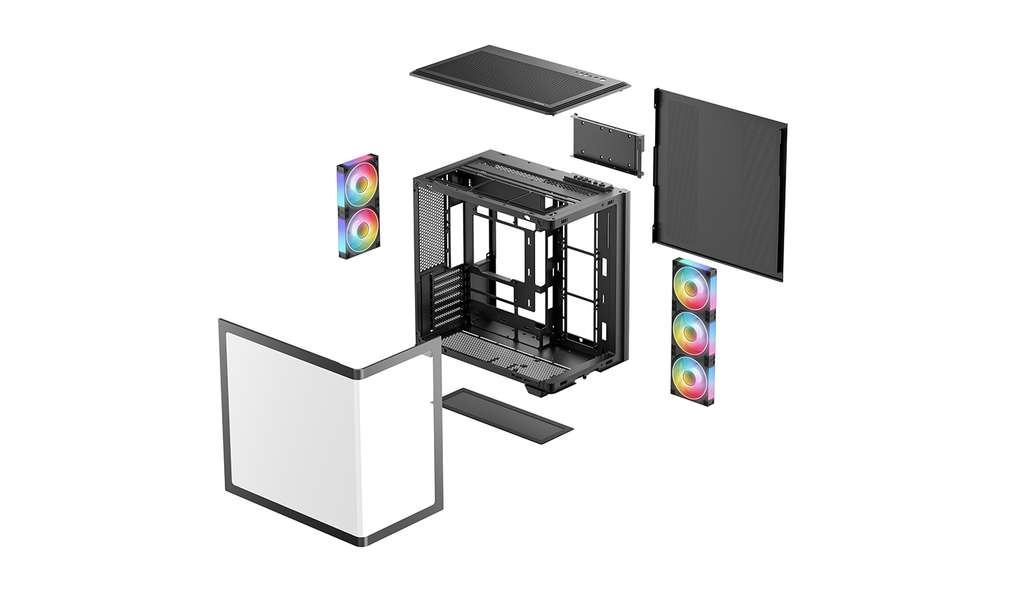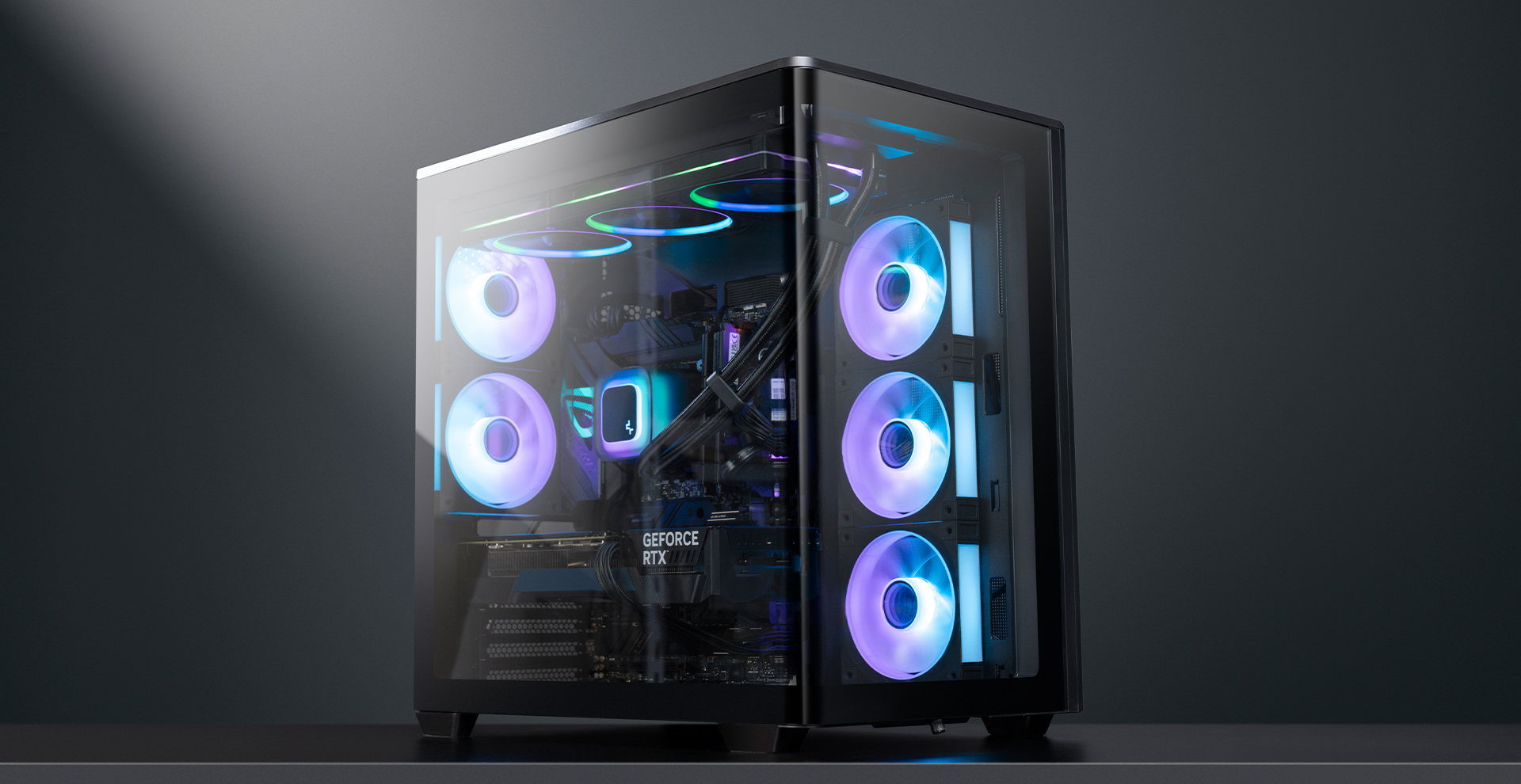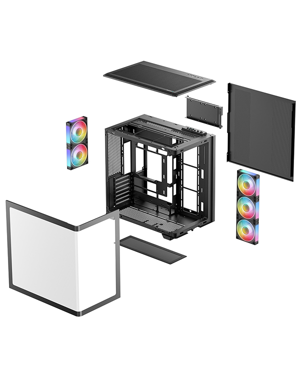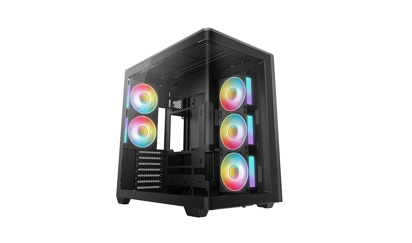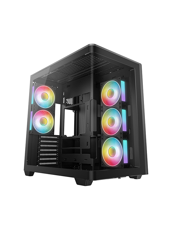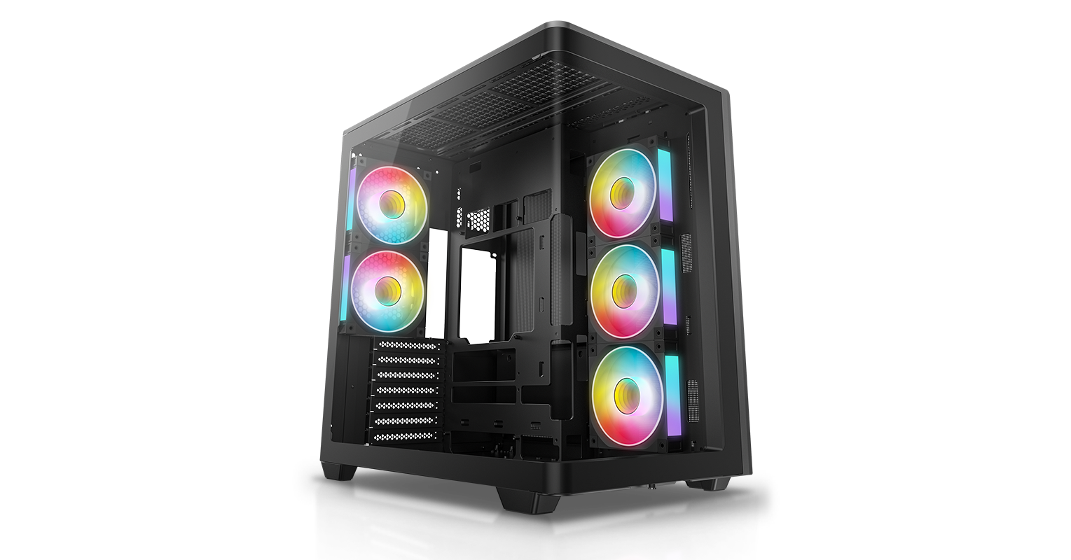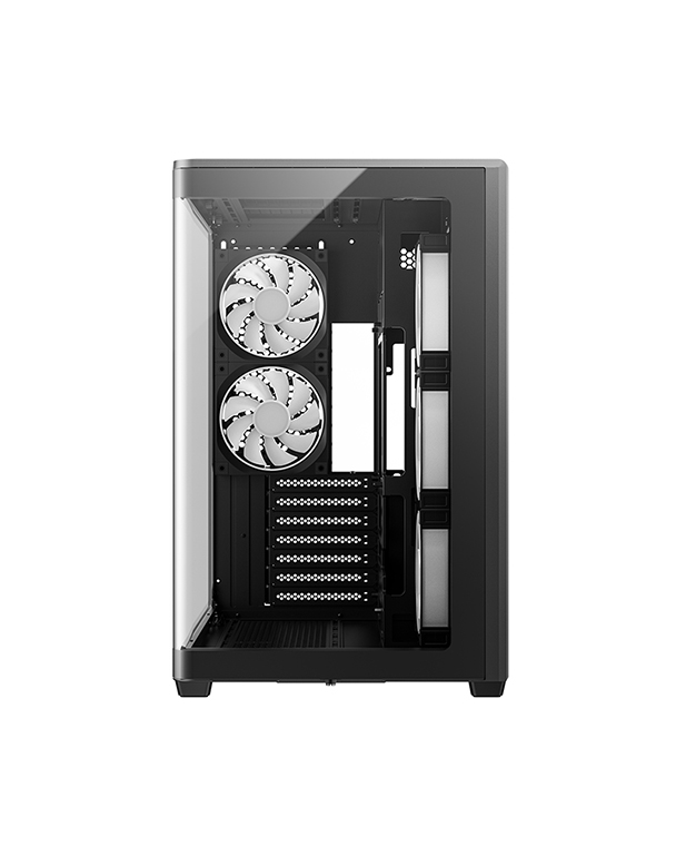 CG590U 5F是一款曲面玻璃全景机箱,采用双舱结构设计,内部空间宽阔。预装五把ARGB风扇,即刻拥有强劲散热与绚丽灯效。