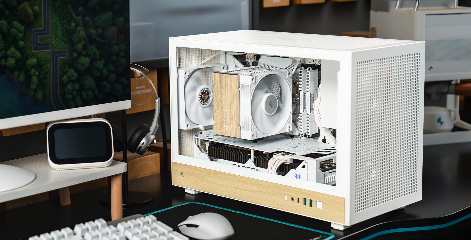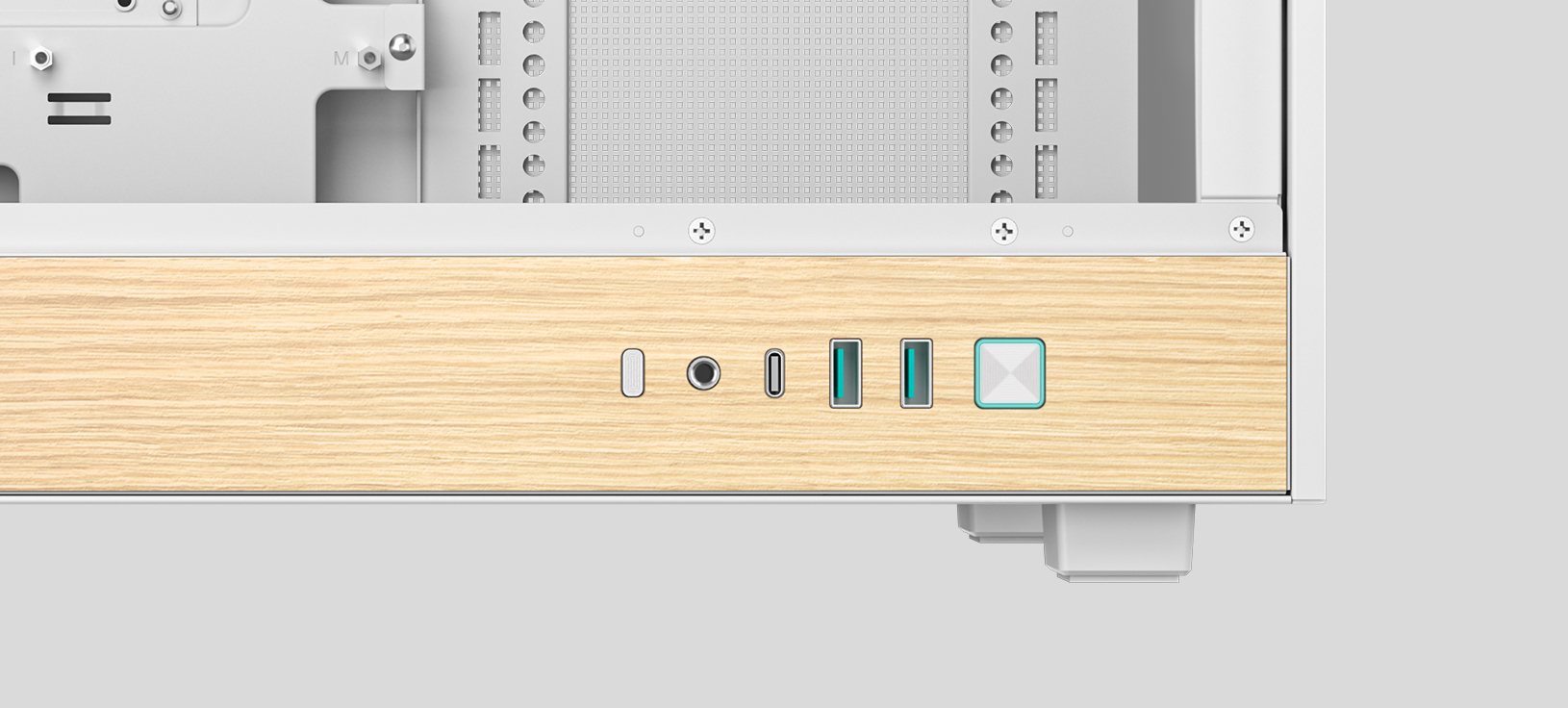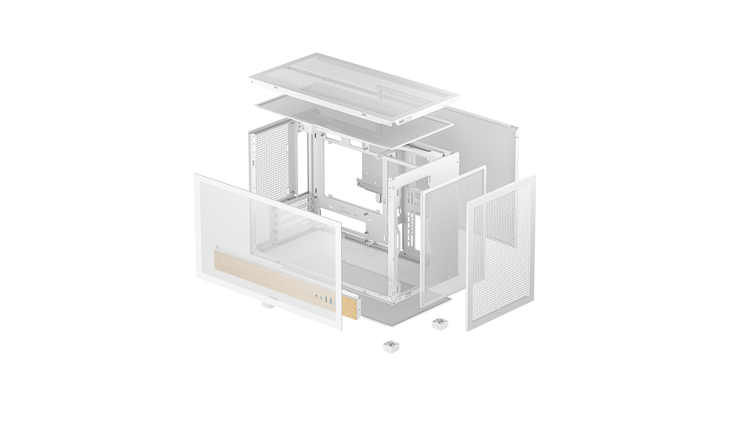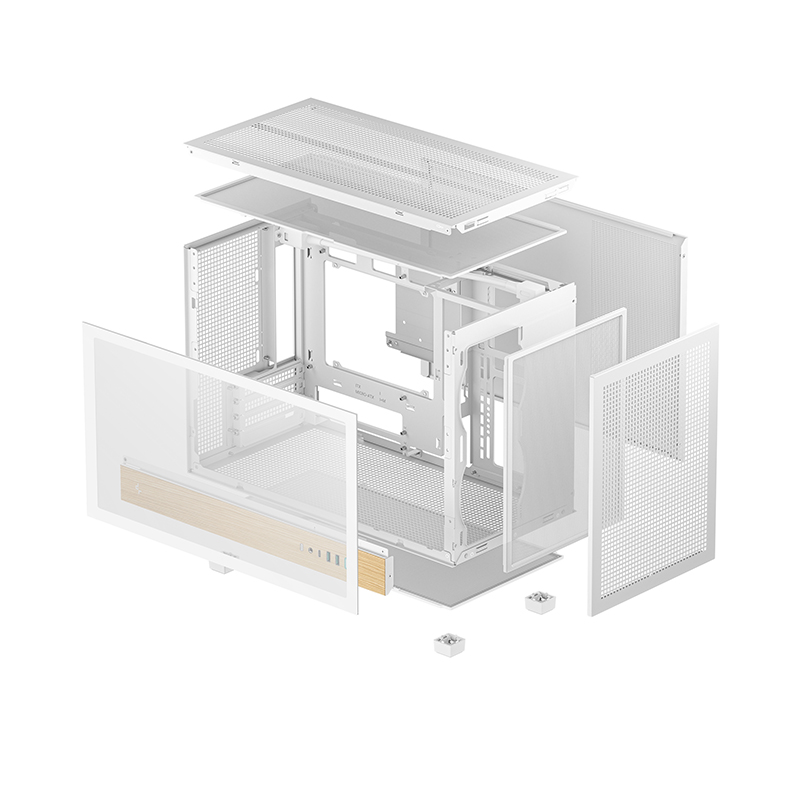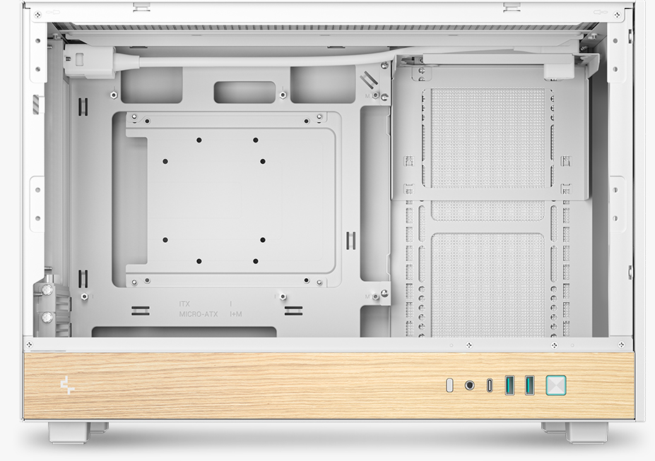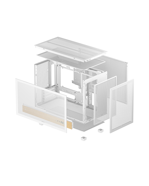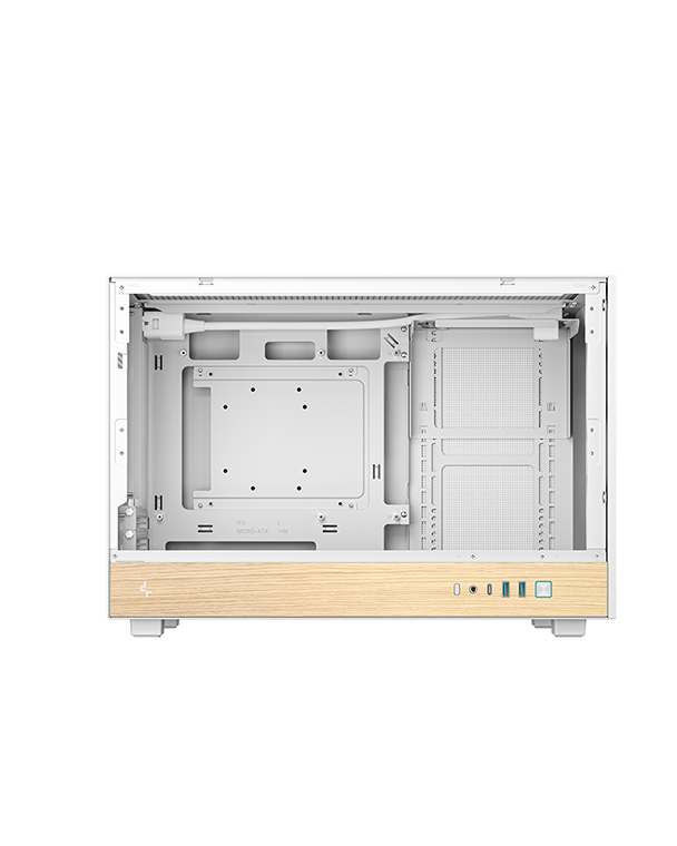 CH260 WOOD WH配备钢化玻璃侧板,可更好的展示内部硬件,而顶部与前面板均可自由搭配PIXEL系列像素颗粒。该机箱同时支持背插主板,背板区域预留了29.6MM的充裕走线空间。