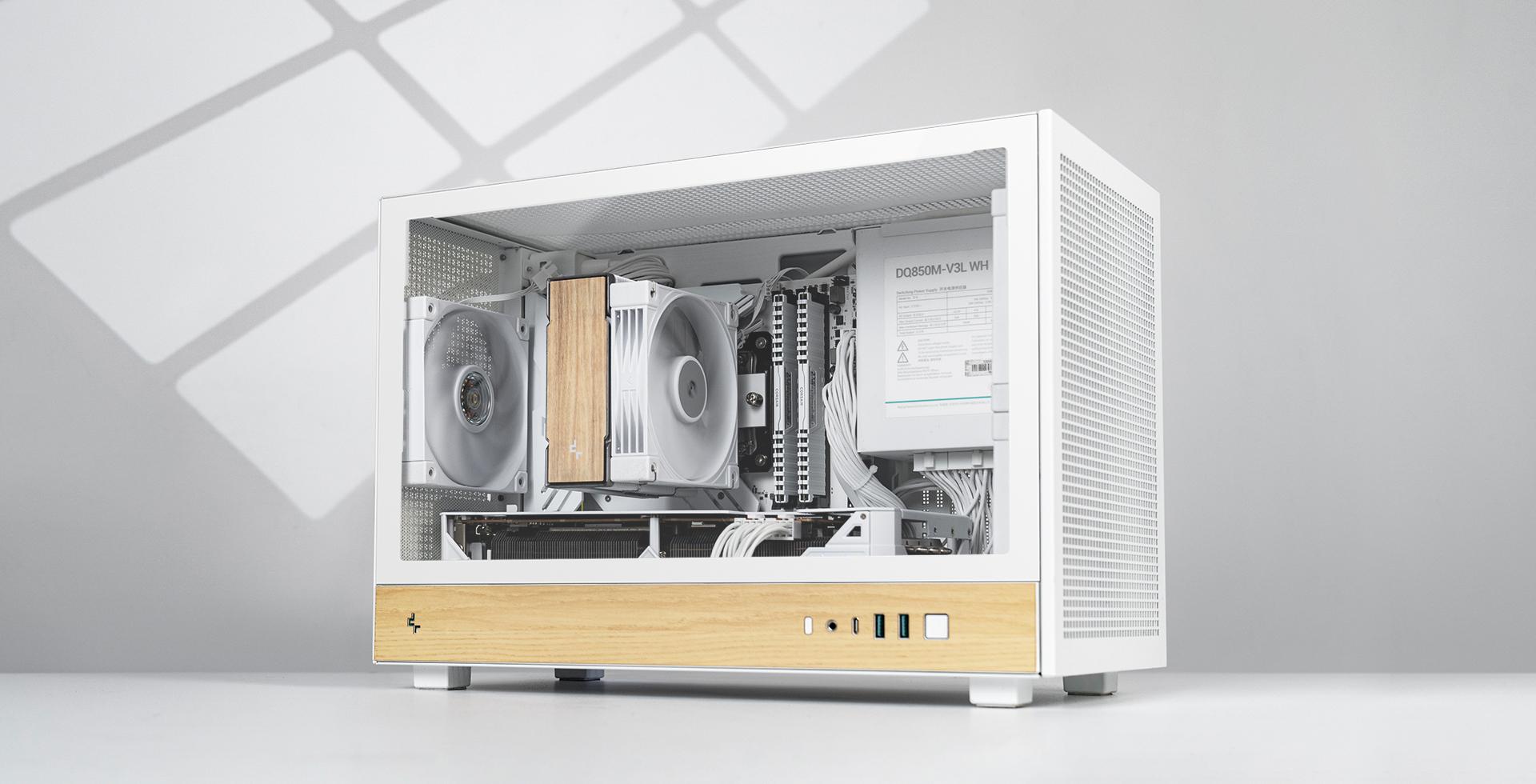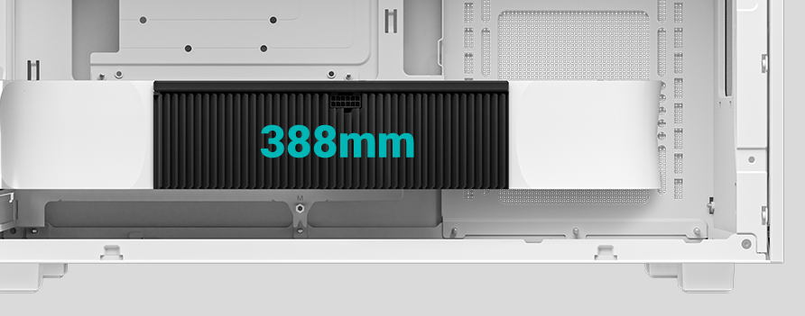 CH260 WOOD WH在关键硬件兼容性上提供多元选择,既可支持长达388MM的全尺寸显卡,若取消前置风扇更可扩展至413MM。通过可拆卸式安装支架,标准ATX PS2电源也能轻松安装,释放内部理线空间。
