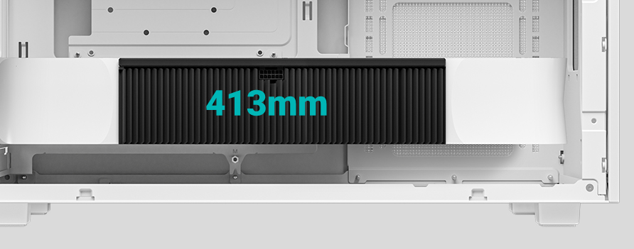 三面网板设计,多达六个120mm风扇位,可在机箱内形成高进风量的贯穿风道,有效解决箱体积热问题。最大可支持顶部安装360mm一体式水冷,或174mm高的塔式风冷散热器。