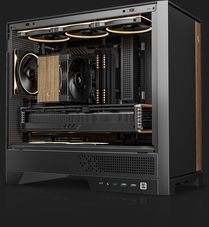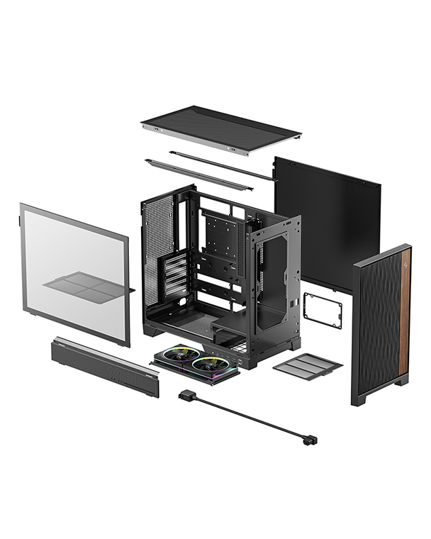CL600秉承形韵兼修的设计理念,巧妙融合垂直格栅与实木质感饰条,打造兼顾自然风道与视觉和谐的紧凑型ATX设计美学。