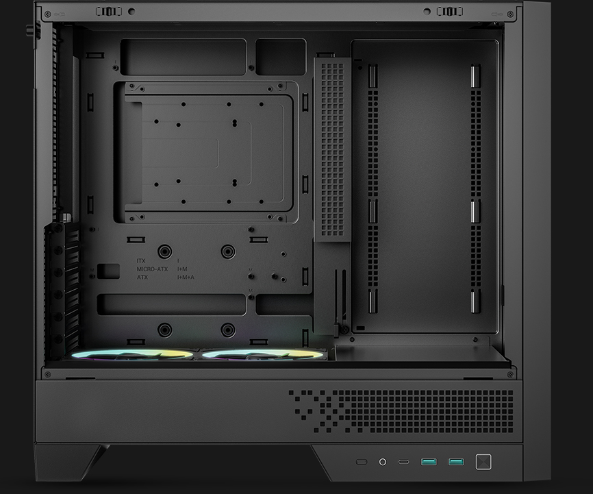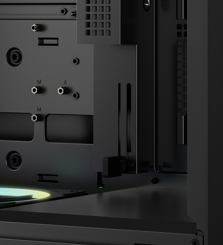 底部预装两颗FL12R SE反叶风扇,采用抽拉式托盘设计与巧妙内嵌结构,在引入强劲冷风的同时为整机增添流光溢彩,视觉空间更显通透。