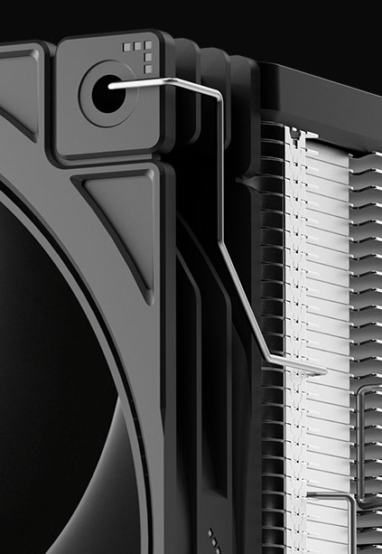 玄冰400性能版PLUS凭借第二代升级技术,全面提升单塔风冷散热表现,带来更具冲击力的全新外观设计。四根高效热管贯穿高密度单塔鳍片组,搭配两个经过精心调校的120mm PWM风扇,实现强劲风量输出与高效热传导。