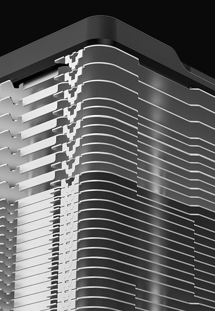 搭载全新推出的叶尖静音环风扇,在高负载下提供强劲性能,在低负载时保持安静低噪。通过优化风量与风压,有效降低整体运行噪音。