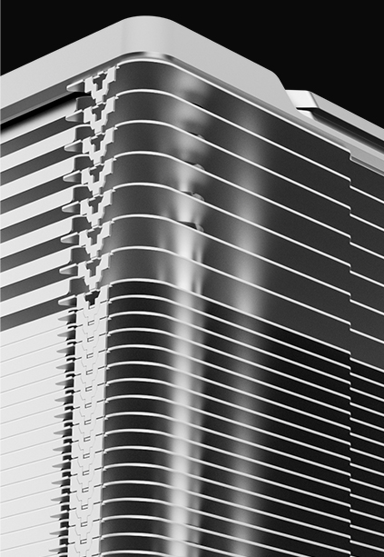 玄冰500性能版延续标志性的矩阵式鳍片风格,引入精致的顶盖装饰,整体质感全面提升。在保留稳定可靠的五热管塔式布局的同时,以极简设计取代 RGB 灯效,呈现沉稳、专业的视觉风格。
