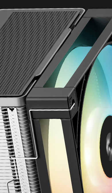 玄冰600 ARGB以紧凑结构实现卓越硬件兼容性,采用偏移塔体设计,100%不挡内存,安装时也无需拆卸风扇,简化安装步骤。