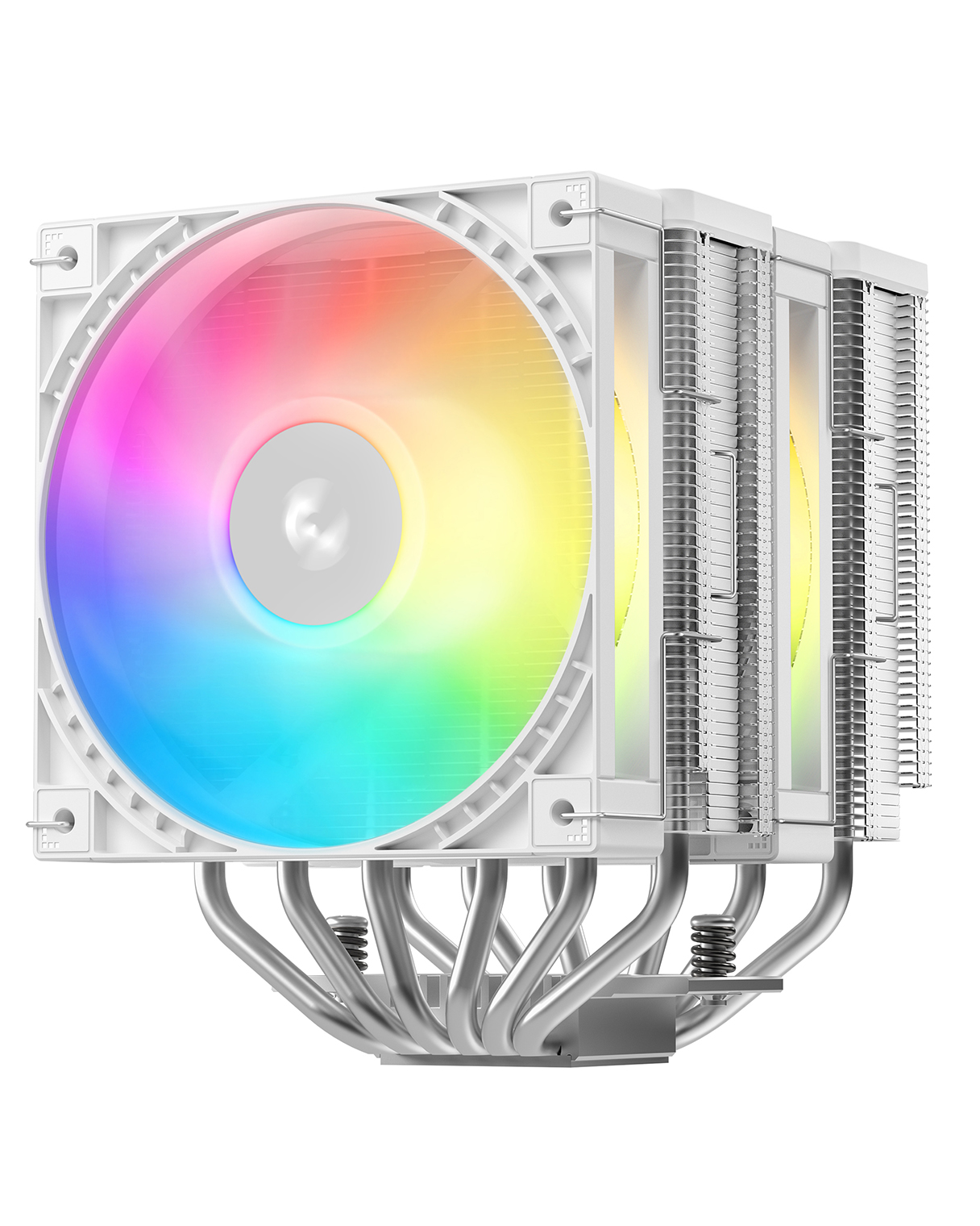 得益于DeepCool最新的热管直触技术(CTT 2.0)与优化设计的塔式散热结构,热管布局全面升级。全新镂空扇框发光风扇,支持主流灯光同步。相较前代产品,大霜塔白 ARGB FORINTEL实现了性能与光效的显著提升。