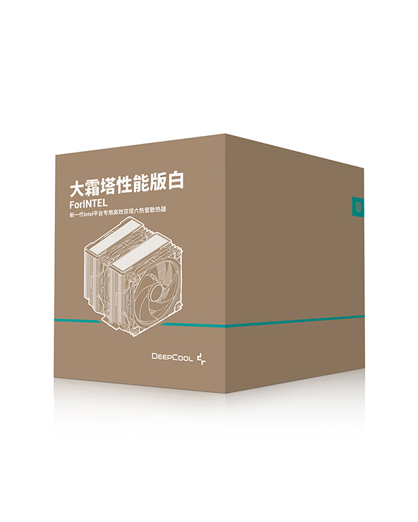 大霜塔性能版白 FORINTEL延续上一代经典风格,同时升级家族化矩阵风格装饰顶盖,质感更出众。传承经典六热管双塔结构,以简约设计取代RGB灯效,塑造沉稳利落的视觉风格