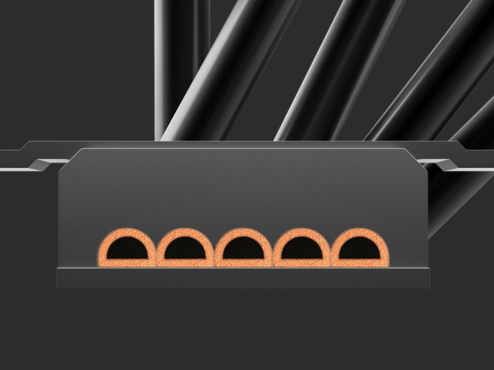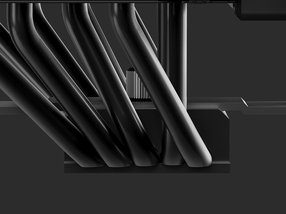 冰立方500暗夜秉承经典设计,采用精密切削的平底纯铜底座和五根铜质热管,带来更强的导热能力。标志性的矩阵鳍片组配合单塔散热布局,为高性能系统提供更优的散热效率。