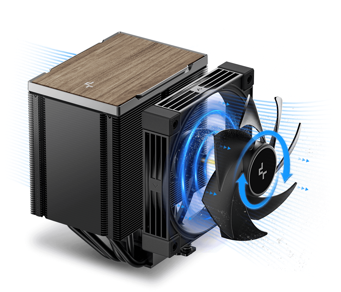 冰立方500暗夜焕新升级,带来更强劲的散热性能与全新ACT启停风扇。配备五根先进铜质热管、高密度单塔散热鳍片、全新设计的静音风扇,结合木纹设计,成就高性能散热的制胜组合。