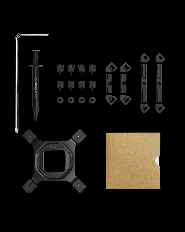 全金属安装支架套件确保在 Intel 与 AMD 平台均能实现稳固便捷的安装,提供多平台偏移安装解决方案,附赠全套辅助工具。