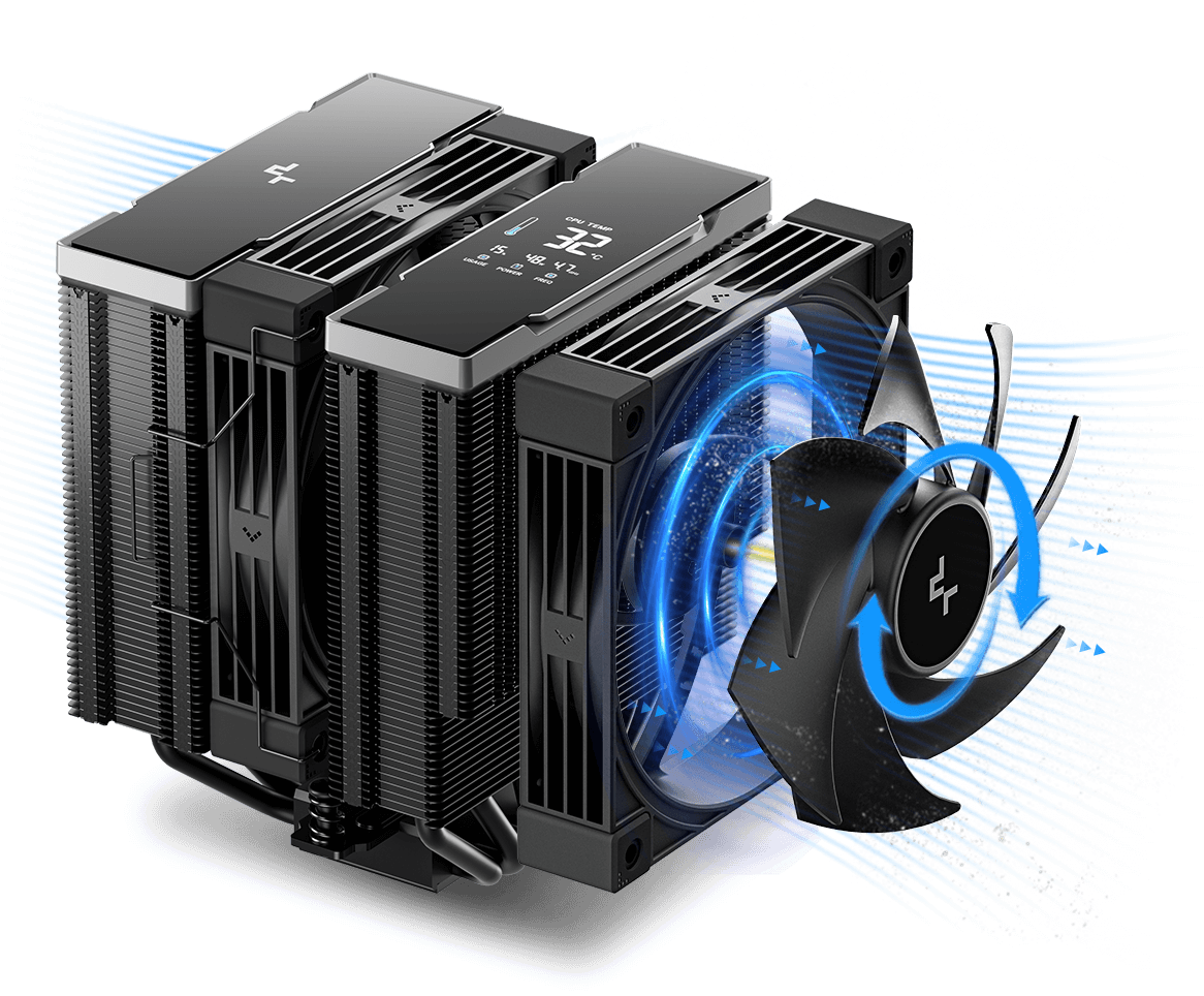 经典冰立方数显系列第二代升级版,性能全面跃升,设计大胆革新。配备6根先进纯铜热管、密集型双塔散热器、全新设计的静音风扇,更搭载高端四分区数字段码屏,以升级技术实现卓越散热,并提供实时系统洞察。