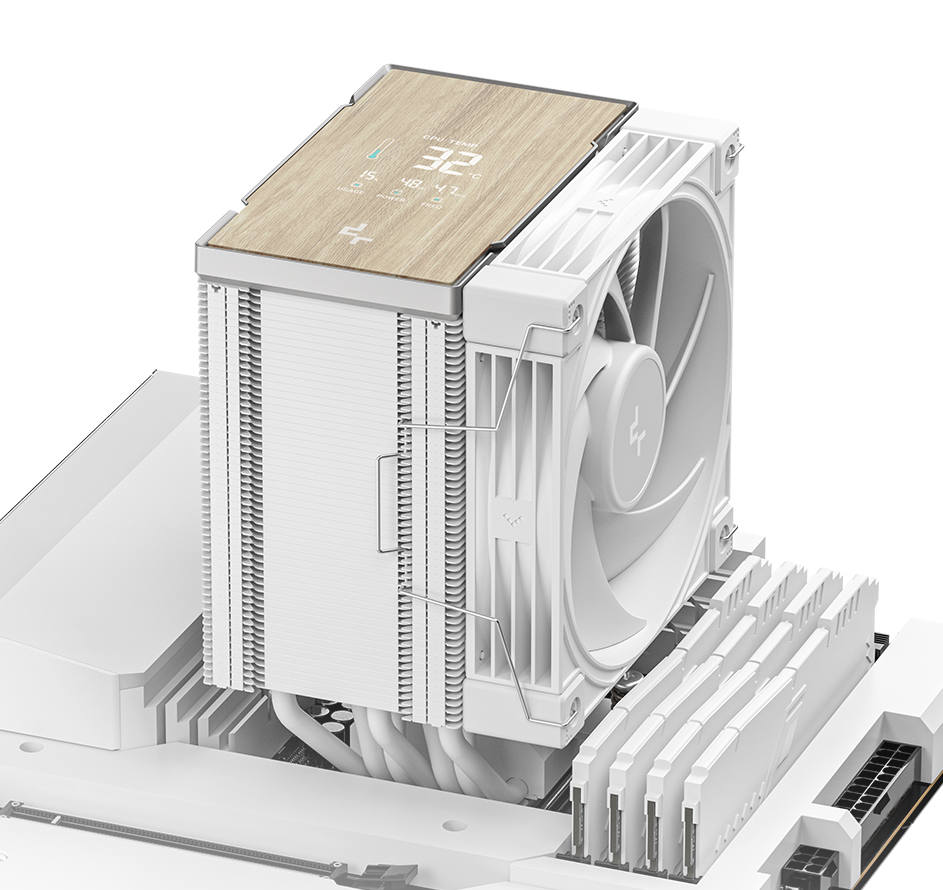 采用偏移式热管设计,容纳更深散热器本体,提升硬件兼容性。为高马甲内存条提供更多空间,并确保所有内存插槽一览无余。