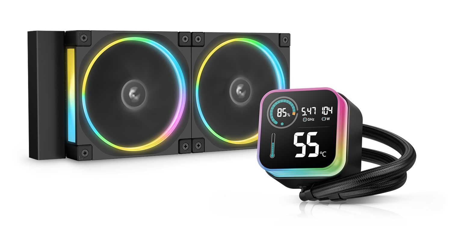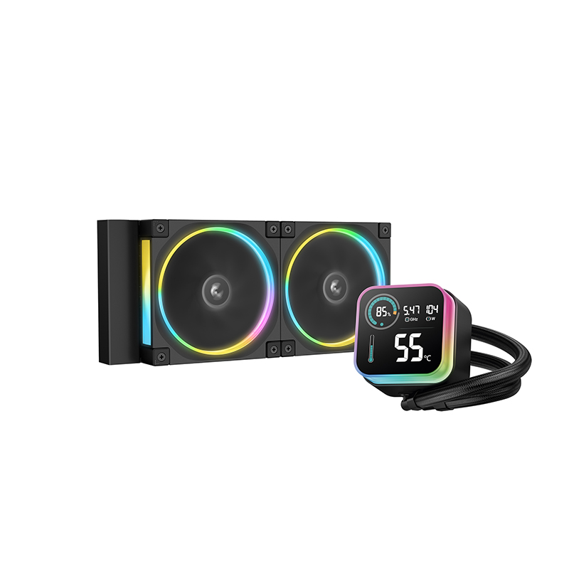 冰翼240 ULTRA ARGB水冷搭载DeepCool最新研发的第六代水泵与幻彩星环FL12风扇,ARGB光环磁吸冷头与LCD段码屏交相辉映。在散热效能与光效质感上实现显著升级。