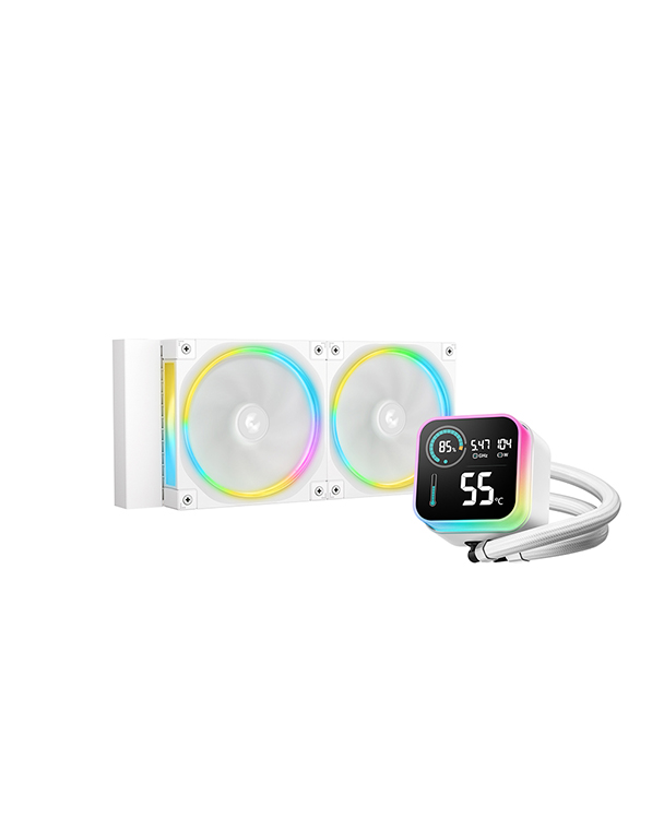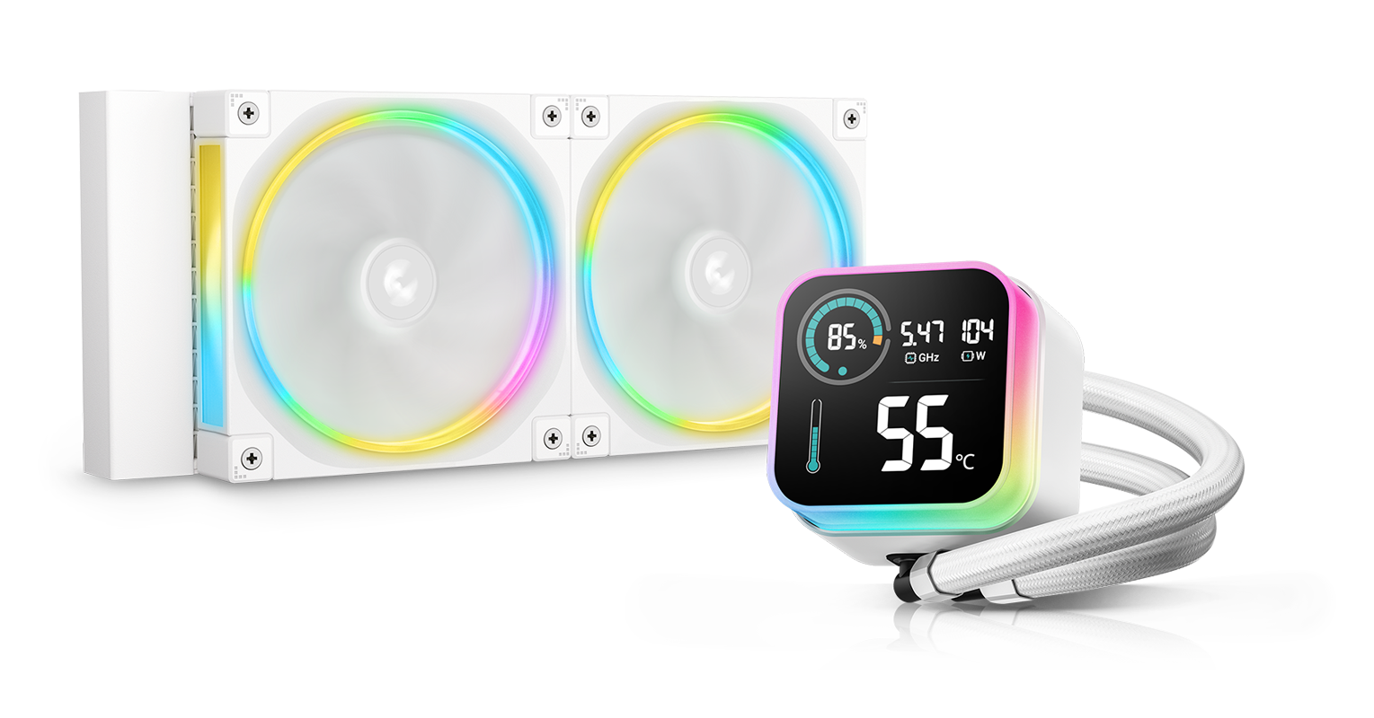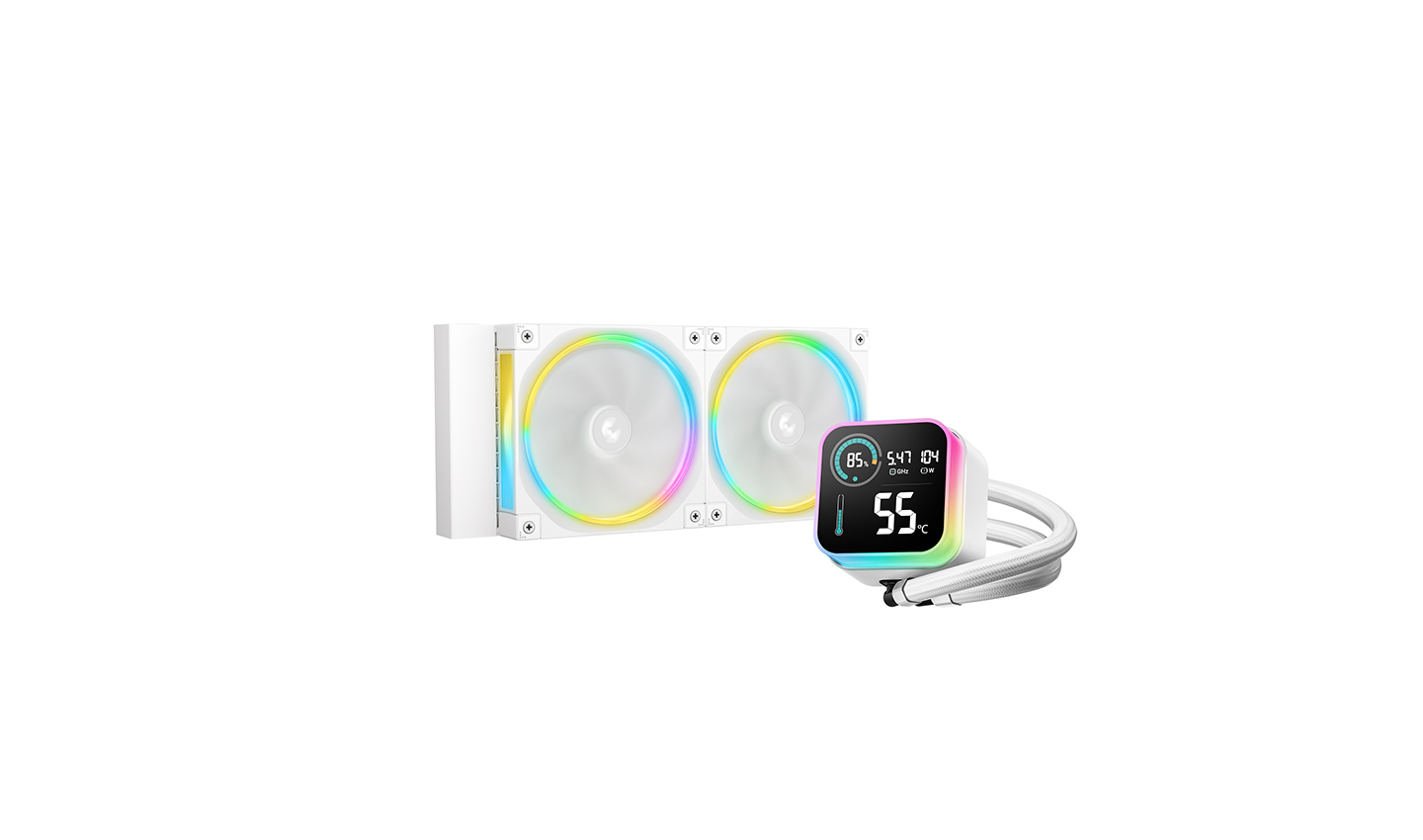 冰翼240 ULTRA ARGB WH水冷搭载DeepCool最新研发的第六代水泵与幻彩星环FL12 WH风扇,ARGB光环磁吸冷头与LCD段码屏交相辉映。在散热效能与光效质感上实现显著升级。